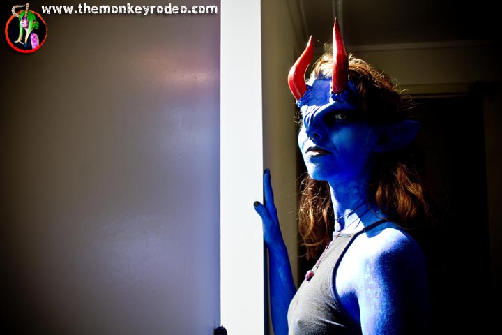 I did this for a quick shoot last week, it was cut a little short since the support for the horns ended up getting uncomfortable by the time the makeup was totally done. We just got a few shots really quick to at least make it worth it.